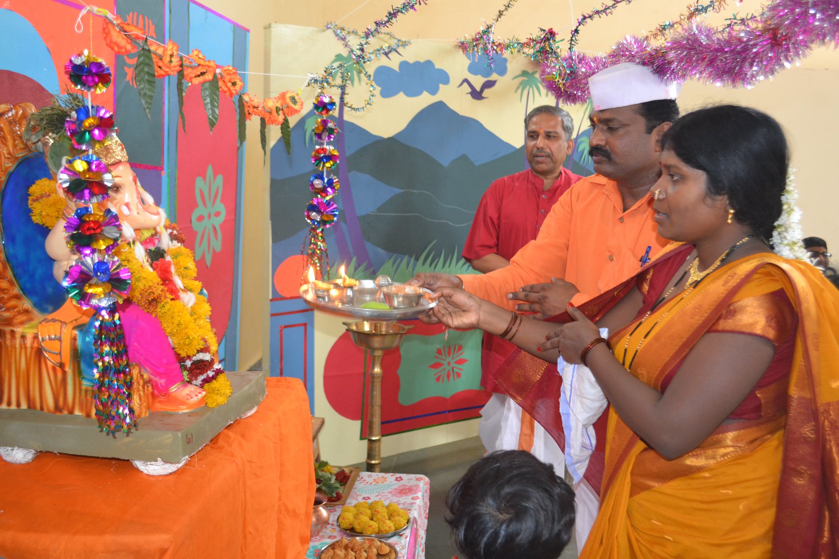 संवेदना प्रकल्पामध्ये रेल्वे विभागातील अधिकारी श्री. रावसाहेब ढवळे यांच्या हस्ते गणेशाची पुजा करण्यात आली