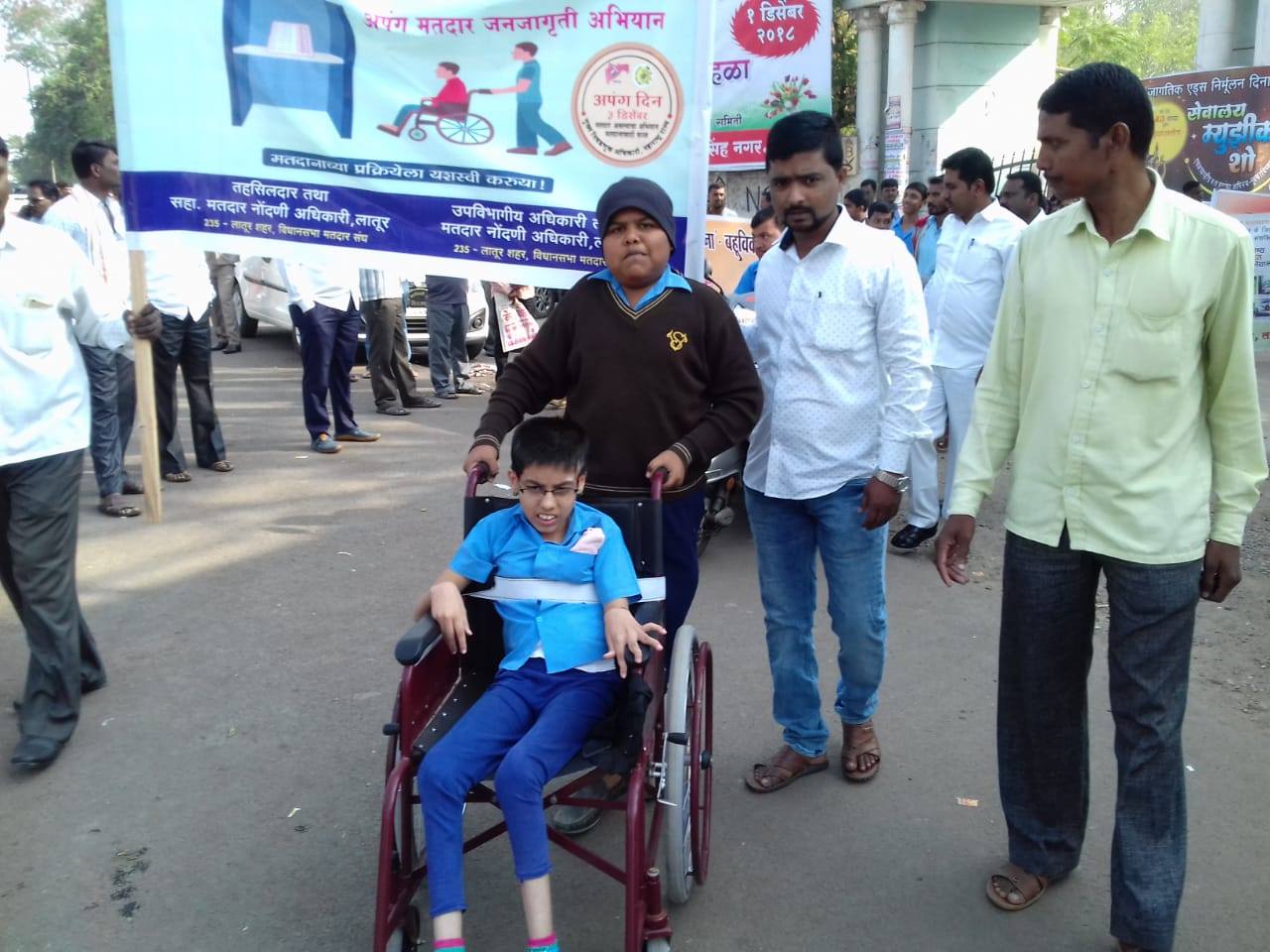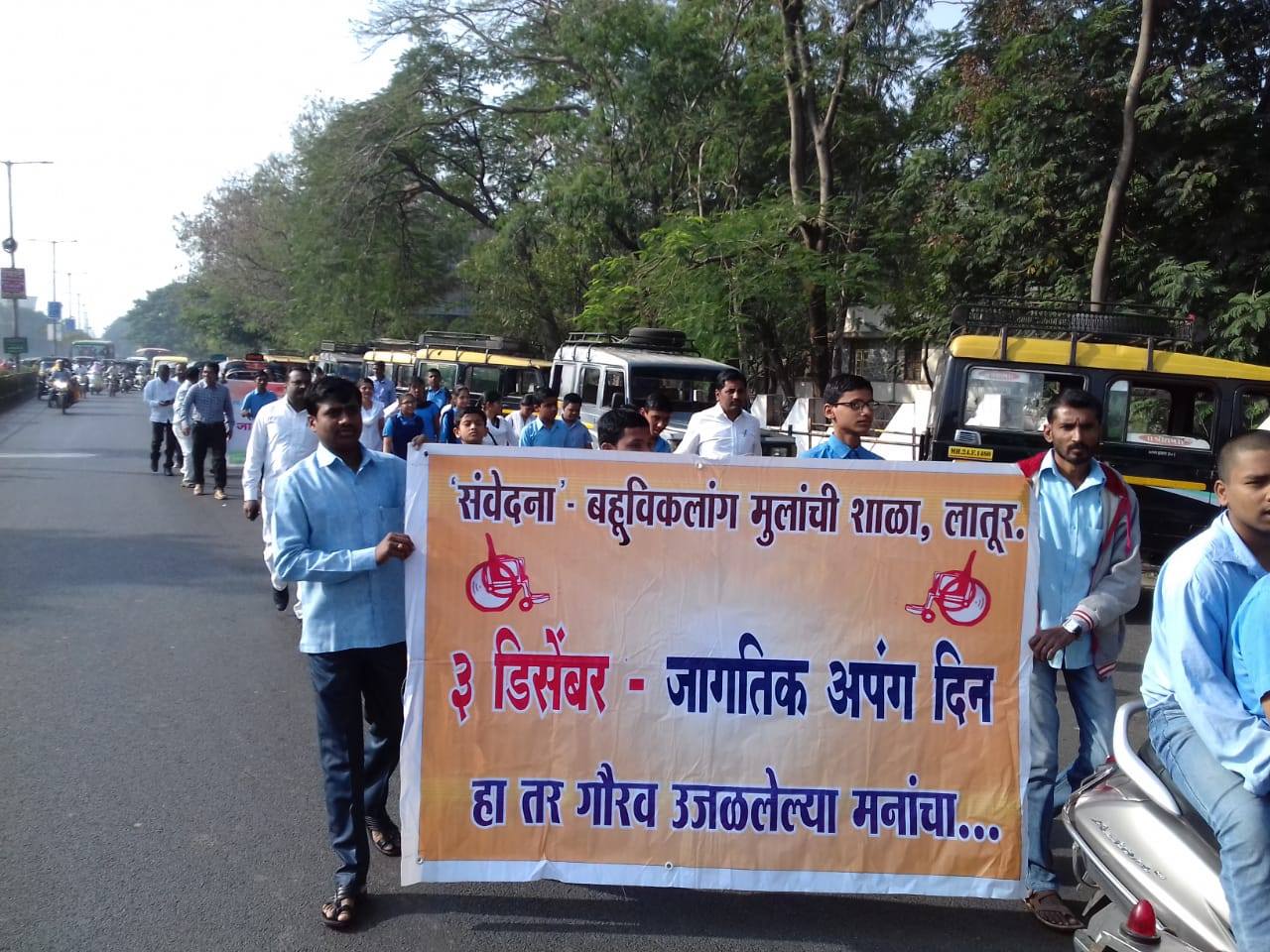 समाजकल्याण विभाग लातुर यांच्या नियोजनातून दिव्यांग विदयार्थी व विशेष शिक्षक यांची शोभा यात्रा काढण्यात आली
